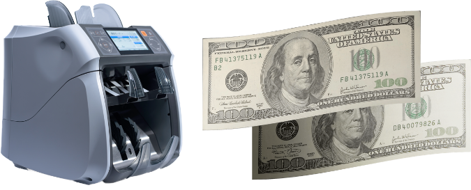 通貨の自動認識や、複数の通貨が混在した混合通貨紙幣の一括計数にも対応しています。