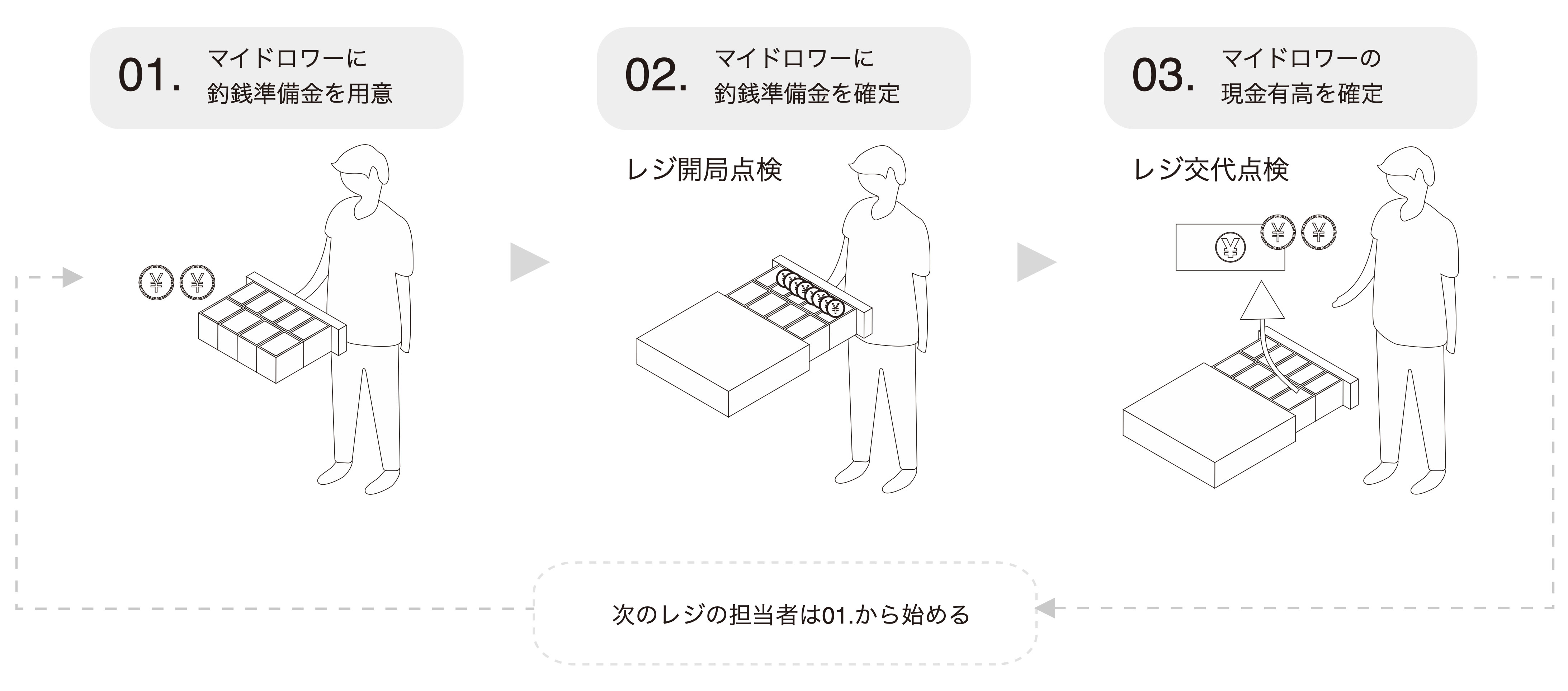 この手順で行っているのは「レジ担当者の責任範囲を明確にする」事に他なりません。